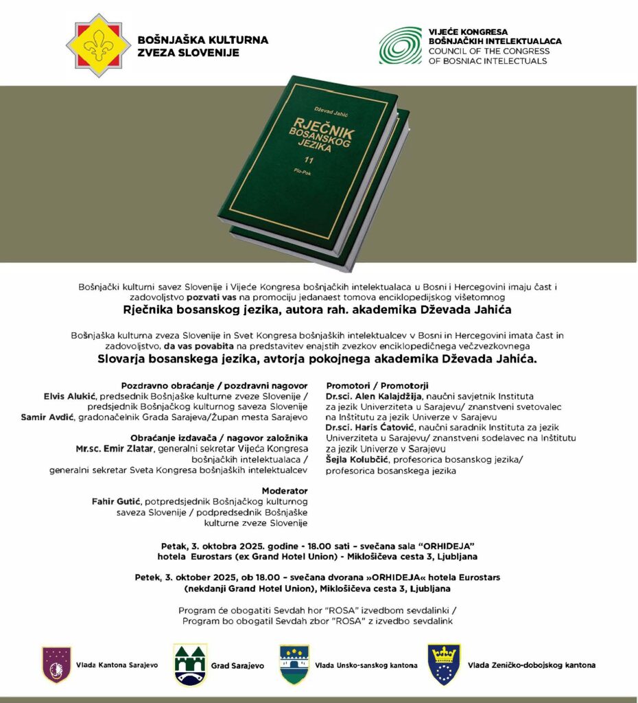Program promocije će voditi moderator Fahir Gutić, potpredsjednik Bošnjačkog kulturnog saveza Slovenije.